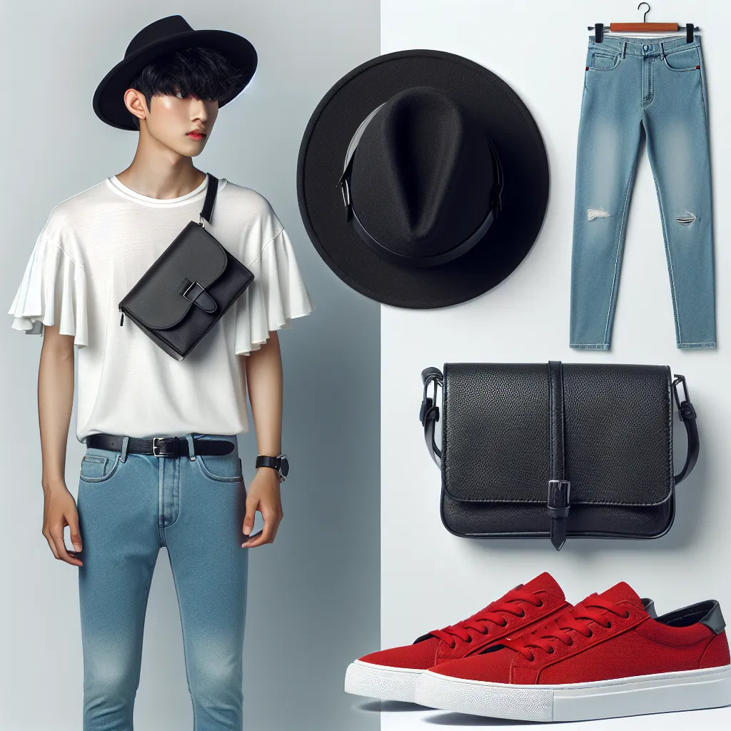 - Классические брюки: Черные или серые брюки в сочетании с белой рубашкой и красными кедами создадут стильный и современный образ.